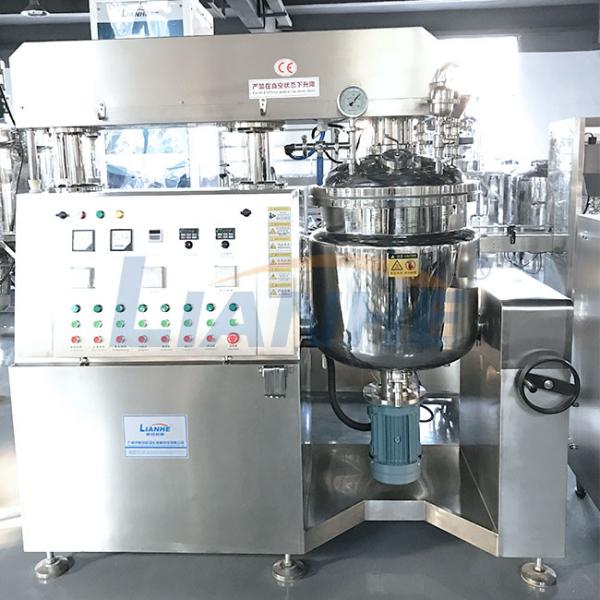 The vacuum emulsifying mixer is mainly composed of water pot, oil pot, emulsifying pot, vacuum system, lifting system (optional), electric control system (PLC is optional), operation platform, etc.